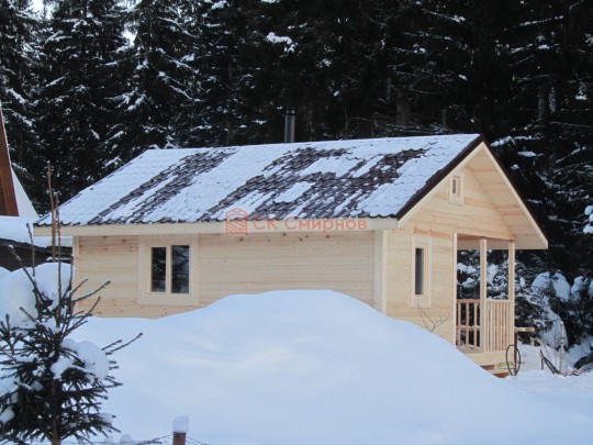 Такая одноэтажная баня 6х6 может быть построена из бруса. Ориентировочный срок строительства 21 дней.