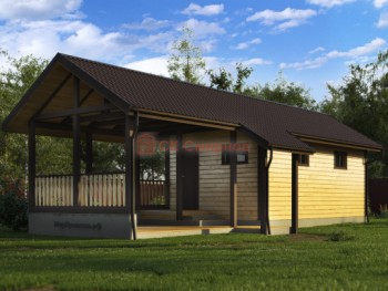 Такая одноэтажная баня 4.5х11 может быть построена из бруса. Ориентировочный срок строительства 22 дней.