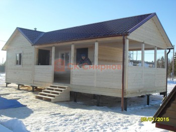 Такая одноэтажная баня 5.5х8.5 может быть построена из бруса. Ориентировочный срок строительства 20 дней.