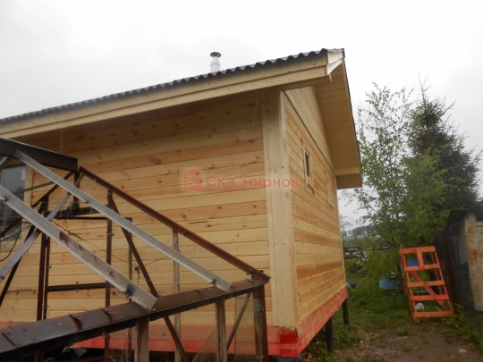 В июне 2020 завершили строительство одноэтажной бани 5х7 с классической двускатной крышей из сухого бруса камерной сушки 140х140 мм. Из такого бруса можно сразу строить с отделкой под ключ, что мы и сделали. Все работы от установки свайно-винтового фундамента до финишкой отделки были выполнены за 15 дней.