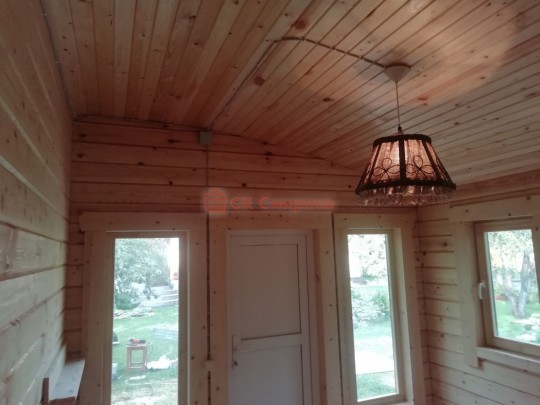 Потолки, стены вансардного каркасного этажа ( если он есть ) обшиваются сухой вагонкой.