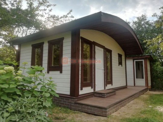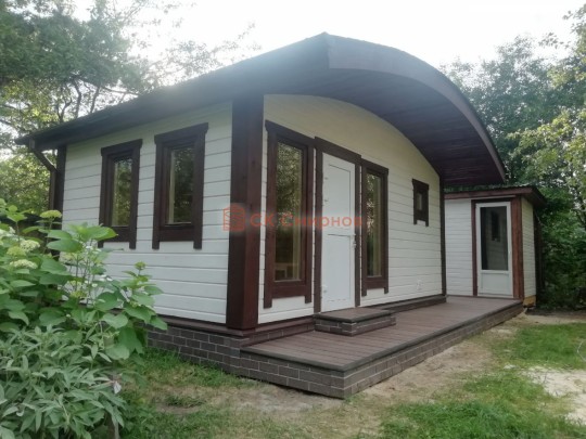 Для строительства красивой бани 3.5х5.3 метров СК Смирнов разработал проект №289 с обустроенной парной и комнатой отдыха. По планировке общая площадь составляет 18.5 квадратных метров. Можно выделить несколько особенностей проекта: терраса, санузел, панорамные окна. Мы строим бани под ключ с полной отделкой снаружи и внутри.