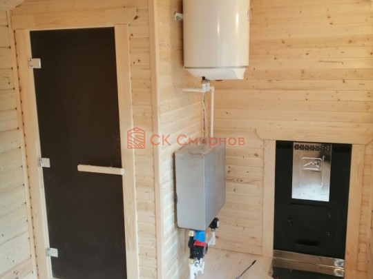 В помывочной устанавливается бойлер, бак, насос, смеситель, одним словом полный комплект чтобы принимать душ даже без центрального водоснабжения.