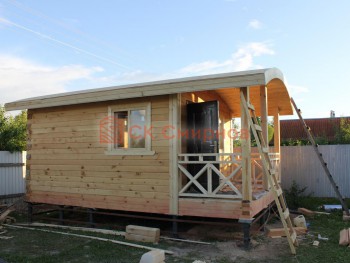 Такая одноэтажная баня 5х4 может быть построена из бруса. Ориентировочный срок строительства 14 дней.