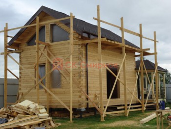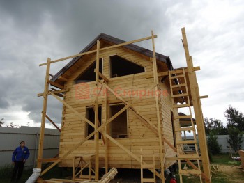 Оригинальный дом 6х6 метров можно построить из бруса под усадку. Ориентировочный срок строительства 10 дней.