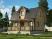 На фото представлен проект загородного дома №253 габаритами 7х8 метров и отличной планировкой общей площадью 87 квадратных метров. Это небольшой каркасный коттедж с мансардой, который может использоваться и как дачный, и как зимний для постоянного проживания.