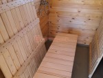 По умолчанию в помывочную бани ставится металлический поддон (как в душе). Честно говоря, это не самое удобное решение, да и не самое симпатичное. Поэтому всем клиентам рекомендуем вместо этого заказать установку пластикового поддона во всю площадь помывочной. Сверху кладутся трапики.
